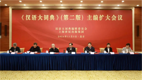 2024年11月3日,《漢語大詞典》(第二版)主編擴大會議在京召開。第十一屆全國人大常委會副委員長、《漢語大詞典》(第二版)主編華建敏同志,中國辭書學(xué)會會長李宇明教授,《漢語大詞典》(第二版)副主編蔣紹愚教授,國家出版基金規(guī)劃管理辦公室副主任劉蘭肖同志,中共上海市委宣傳部出版處處長毛小曼同志,以及新增補的副主編、分冊主編、編委代表出席會議,會議由上海世紀(jì)出版集團黨委委員、副總裁毛文濤同志主持。本次會議旨在梳理總結(jié)前一階段工作,安排合卷本工作的各項事宜,并初步謀劃《漢語大詞典》的中長期發(fā)展。