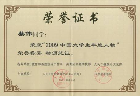 蔡偉當(dāng)選“2009中國(guó)大學(xué)生年度人物”