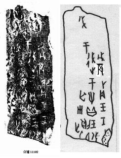 11、《合補》11102正面骨面剝蝕嚴重,字跡多不清晰,今據(jù)實物試摹之。