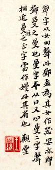,鄧孟作監(jiān)妟尊壺。《説文》所無。王國維曰:此曼字從冃從女;‘曼’ 者,鄧姓也?!薄巴乇尽钡谌齼脏嚸蠅厣w王跋曰: