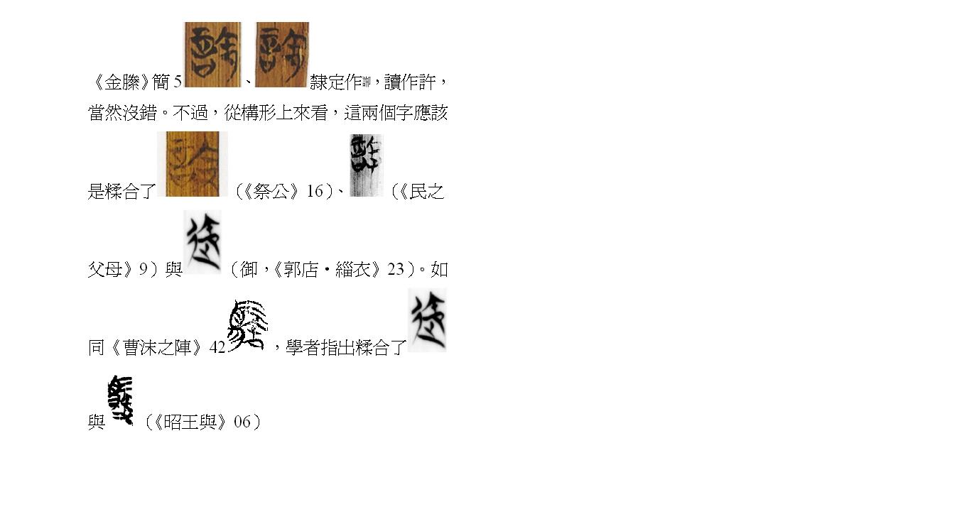 1.既然《包山》153的「陵」可作《包山》154的從「仌」之形,則《金滕》的「糸仌」為何不能直接釋為「綾」字?既然【朕與夌】可以通假,則《金滕》的「綾」為何不能讀為今本「滕」?