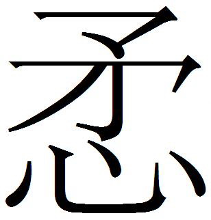 簡(jiǎn)文“𢘅妻”,整理者讀“𢘅”爲(wèi)“媢”,解爲(wèi)“妒忌”。[18] 此據(jù)其上“是人斯乃讒賊媢嫉”及其下“曰余蜀(獨(dú))備(服)才(在)寢”一句立論,不無(wú)道理。不過(guò)此句今本作“譬若匹夫之有婚妻”,王念孫云:“婚妻,本作‘昏妻’,此後人不曉文義而改之也。據(jù)孔注云喻昏臣也,則本作‘昏妻’明矣?!?[19] 據(jù)此則簡(jiǎn)文“𢘅”字或可讀爲(wèi)“瞀”。《尚書(shū)·益稷》:“下民昬塾。”孔傳:“言天下民昬瞀塾溺。”孔疏:“瞀者,?;笾??!薄盾髯印し鞘印罚骸笆浪字疁溪q瞀儒,嚾嚾然不知其所非也?!睏顐娮ⅲ骸邦Γ溡??!焙?jiǎn)文“𢘅”字作下揭形體: