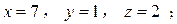 當(dāng)y=1時,x=7,z=2,這組解可計為(7,1,2), 第一組