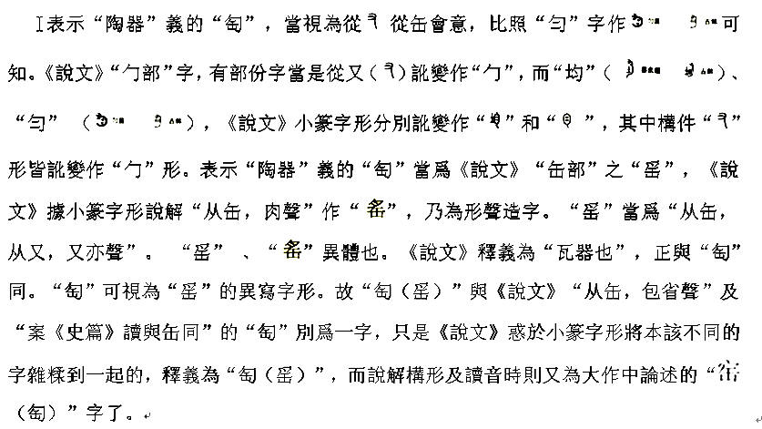 兩位所舉例子對我們的討論很有啟發(fā)。我們認為《說文》“匋”字,其所從“