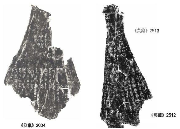 [11]胡厚宣(1980)文中提到的在英國劍橋大學圖書館所藏金璋舊藏的Hopkins1110《金璋所藏甲卜辭》一書未見著錄。但見於《英國所藏甲骨集》著錄編號為2634。此片為肩胛骨(長25公分,寬約19公分)常被引用作為證明庫1506為偽刻的“以此例彼”的佐證。