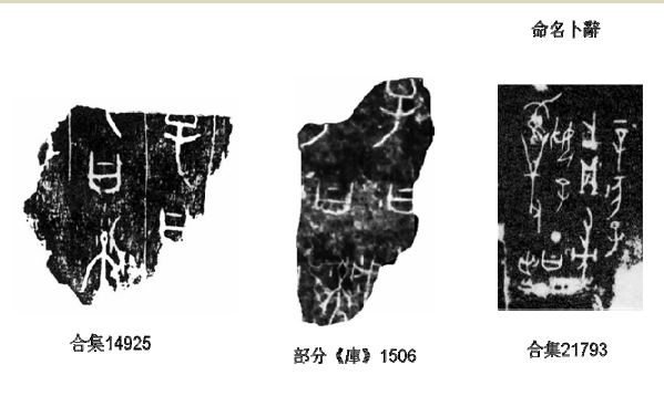 1956:陳夢家在《殷墟卜辭綜述》一書(1988年版,頁499-501)以《庫》1506片刻辭,《燕京大學藏殷契卜辭》之《燕》209(即合集14925)與《殷虛文字乙編》之《乙》4856(即合集21727)三片作為商代家譜刻辭之例。[4]