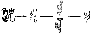 ”之間確實存在繁簡變化的關(guān)系。至此,我們可以對王先生所繪制的文字演變軌跡圖稍作調(diào)整,為: