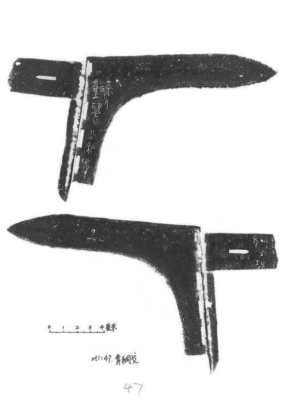 附圖 M1:382戟拓片(2011年初拓) M1:47戈拓片(2011年初拓) M1:47戈拓片(2011年初拓) M1:382戟照片 M1:382戟拓片(2012年) M1:382戟局部 M1:47戈照片 M1:47戈照片 M1:47戈拓片(2012年) M1:47戈出土后修復(fù)時(shí),內(nèi)部銘文為膠水覆蓋,僅留一點(diǎn)痕跡,故未引起人們重視,此為清理以后最初的照片。 M1:47戈修補(bǔ)膠水脫落后內(nèi)部末端照片 2011年9月18日初稿 2012年2月12日二稿 2012年10月28日三稿 附記:此文二稿已刊《古文字研究》第29輯,并在復(fù)旦大學(xué)舉辦的第十九次古文字年會(huì)上宣讀,由于當(dāng)時(shí)作者電腦忽染病毒,事先準(zhǔn)備好的電子文本無(wú)法演示,因而沒能將兩件兵器給與會(huì)的專家學(xué)者介紹清楚,甚憾!為便于學(xué)者研究,今于文后附部分照片,僅供研究之用。 另:二稿中作者誤戟為戈,且意補(bǔ)隸定的銘文部分又未加說(shuō)明,這是不應(yīng)有的錯(cuò)誤,抱歉。
