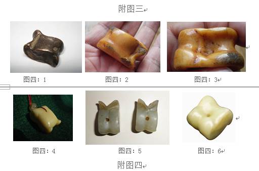 考古發(fā)現(xiàn)的“嘎拉哈”以1955年10月內(nèi)蒙古呼和浩特市美岱村南寶貝染山溝北魏磚墓出土的銅嘎拉哈為最早。銅質(zhì)嘎拉哈可能就是用來(lái)玩擊打游戲的所謂“髀石”(見(jiàn)附圖三)。其他遼、金、元以后時(shí)期的發(fā)現(xiàn)還有:內(nèi)蒙古昭盟巴林左旗雙井溝兩處遼代的火葬塋地中,MA4的火葬罐里同骨灰一起有“羊距骨六個(gè)”,MB2的火葬罐里有“羊距骨十八個(gè)”;1983年巴林右旗遼墓曾發(fā)現(xiàn)九枚嘎拉哈,牛“嘎拉哈”一枚,山、綿羊嘎拉哈七枚,還有一枚銅鑄的仿綿羊嘎拉哈;黑龍江省泰來(lái)縣英山遼墓出土有鑄銅仿羊距骨1枚;黑龍江畔綏濱中興三號(hào)近代墓葬出土1枚用水晶制作的仿羊距骨(附圖二);大慶市大同區(qū)老山頭寶山二村西南岡發(fā)現(xiàn)的遼金墓有兩枚穿孔的羊距骨;奧里米金墓中出土有白玉雕刻的羊距骨;阿城、賓縣等地金墓中亦有動(dòng)物嘎拉哈和銅鑄仿羊嘎拉哈出土。[19]遼、金、元時(shí)期的銅鑄嘎拉哈有的刻有文字,有的還鑄有馬的圖案。許多嘎拉哈都帶穿孔,說(shuō)明都是用于穿系或用于佩戴的。清代早期的一些墓葬,也仍然有隨葬嘎拉哈的現(xiàn)象。