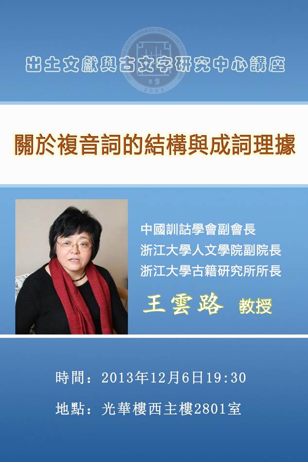 中國訓詁學會副會長、浙江大學人文學院副院長、浙江大學古籍研究所所長王雲路教授將於12月6日晚19:30在我中心作題為“關於複音詞的結構與成詞理據”的學術講座。