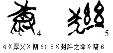 ”字所從(西周早期);2大簋蓋(西周晚期,《集成》08.4298);[4]3叔尸鎛(春秋早期);4復封壺甲(春秋早期);5邾公華鐘(春秋晚期,《集成》00245);6復封壺乙(春秋早期);7清華簡《封許之命》簡3(戰(zhàn)國中晚期)