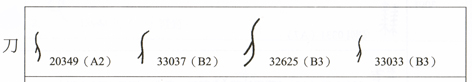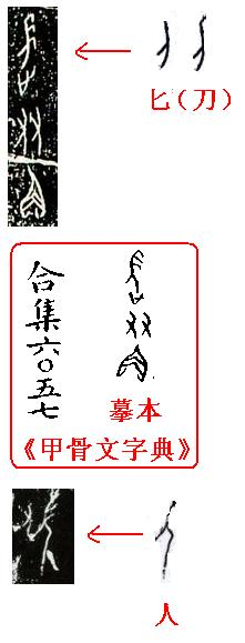 xzjgw認(rèn)為被王先生釋為“微”的那個(gè)字是從刀,這是很正確的。但甲骨文到金文的微字(或其初文)一直是從人的,現(xiàn)在這個(gè)字既然不從人,所以根本汪是微字。從圖畫(huà)性質(zhì)較強(qiáng)的商代金文中可以看出,刀字或是從刀的字,刀形有三種寫(xiě)法:一種是直柄的,柄端還有裝飾,一種是簡(jiǎn)單的直柄,一種柄端彎向刃側(cè)。而甲骨文中的刀字,把圖形線條化了,一律作彎柄形。