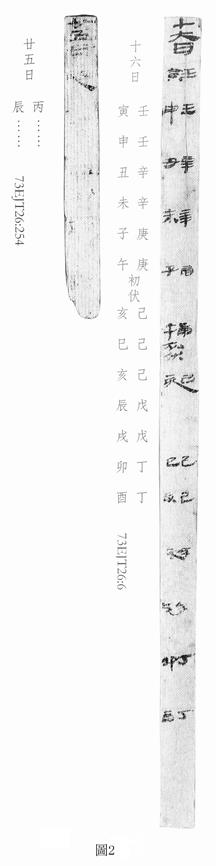 十六日 壬寅 壬申 辛丑 辛未 庚子 庚午初伏 己亥 己巳 己亥 戊辰 戊戌 丁卯 丁酉(73EJT26:6)