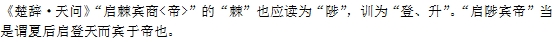 啟為人王,身處下土;帝為天帝,居于天上;二者之間要發(fā)生聯(lián)系,啟“賓(作客)”于“帝”,最值得考慮的恐怕就是“登、陟(降)”一類的詞匯吧——要么你上天,要么我下凡