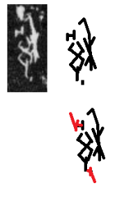 所從之“糸”視之,是無法解釋多出之殘留筆畫的。就算以缺刻視之,要想補(bǔ)全成為甲骨文“糸”上部之“屮”形,也是無法解釋多出之殘留筆畫的。擬構(gòu)如下: