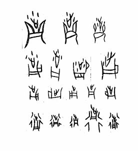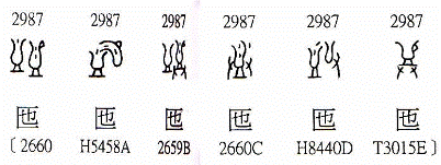 我認(rèn)為假如要和甲骨文聯(lián)繫,字形可以聯(lián)繫上的是如下圖所示字: