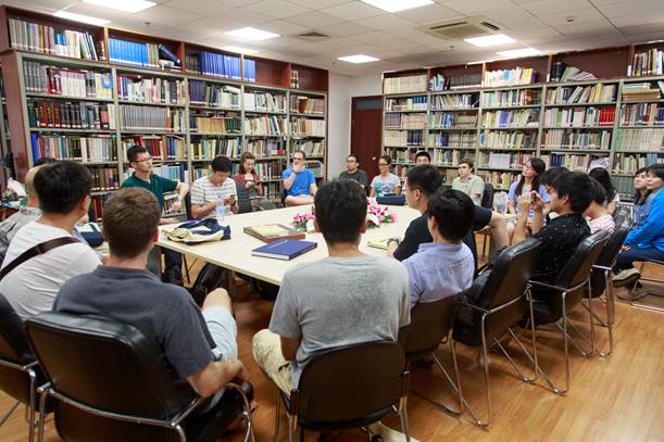 本次研習(xí)營還舉辦了其他一些活動。16日晚,研習(xí)營學(xué)員與中心劉嬌、張傳官和清華大學(xué)出土文獻(xiàn)研究與保護(hù)中心賈連翔三位教師在中心資料室舉行座談會。參加者分別介紹了自己的研究領(lǐng)域或論文選題,並就相關(guān)研究進(jìn)行討論,爲(wèi)今後進(jìn)一步交流奠定了良好的基礎(chǔ)。
