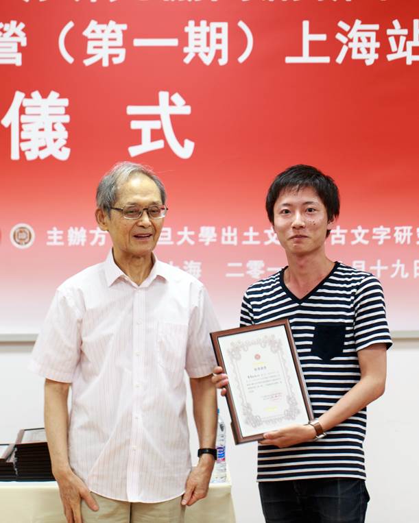 19日下午,研習(xí)營舉辦結(jié)業(yè)儀式。結(jié)業(yè)儀式由劉釗教授主持。裘錫圭教授向研習(xí)營學(xué)員頒發(fā)結(jié)業(yè)證書。