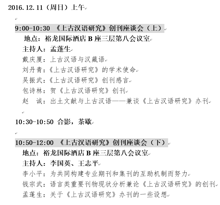 【簡(jiǎn)訊】《上古漢語研究》創(chuàng)刊座談會(huì)暨出土文獻(xiàn)與上古漢語學(xué)術(shù)研討會(huì)在北京召開(附 會(huì)議議程)