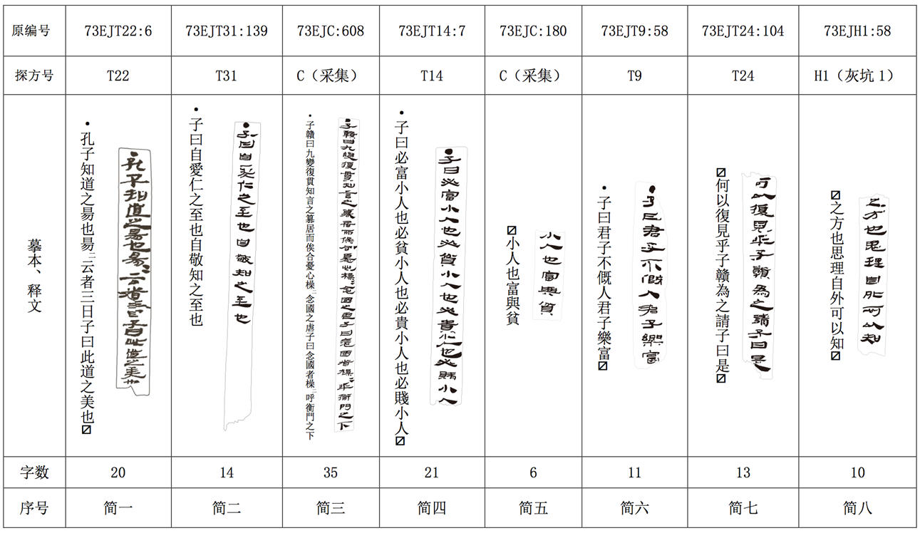 據(jù)此,筆者對肩水金關(guān)漢簡中似為《齊論語》的失傳章句進(jìn)行梳理,現(xiàn)附簡牘摹本及釋文如表2,于后文略作考證。
