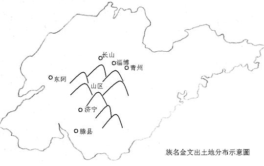 ,舟父戊爵)。通過(guò)地圖(如下所示),我們發(fā)現(xiàn)這一系列地名是有聯(lián)繫的。青州、長(zhǎng)山、淄博處在山東北部的同一區(qū)域;滕縣、泗水、東阿處在山東西南的同一區(qū)域。這一串地名又貼著山東中部的泰山山脈,沿著山脈的輪廓,在山區(qū)周圍的平坦地帶排開。