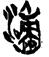 並且下部作“人”形分叉的形體上部也往往寫得與“用”形相似,如: