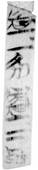 此簡殘存一字,文義不可知。商承祚先生將其歸入二號墓竹簡(編爲(wèi)63號),《楚集》認(rèn)爲(wèi)此片可能屬於一號墓的簽牌。[12]從字跡風(fēng)格看,商先生說或可考慮。