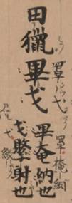 古書中尚有“獠獵畢弋”、[10]“遊獵畢弋”[11]等。而其最爲(wèi)常見的則爲(wèi)“田獵畢弋”。如《墨子·非命中》“外之?dāng)夫G田獵畢弋”,《莊子·則陽》:“衛(wèi)靈公飲酒湛樂,不聽國(guó)家之政;田獵畢弋,不應(yīng)諸侯之際。”《詩?齊風(fēng)?盧令序》:“襄公好田獵畢弋,而不脩民事,百姓苦之。”又如法藏敦煌伯3454《六韜》亦有: