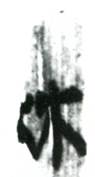 明顯可以看出“纑”之下方尚有一筆殘筆,此殘筆所屬文字對(duì)應(yīng)的正是《阜蒼》C012首字“繭”,因此,此二簡(jiǎn)當(dāng)可直接拼合,《阜蒼》C014底端殘筆可能屬於“繭”所屬“艸(艸)”之橫筆,據(jù)此拼合之後其茬口部分如下圖所示: