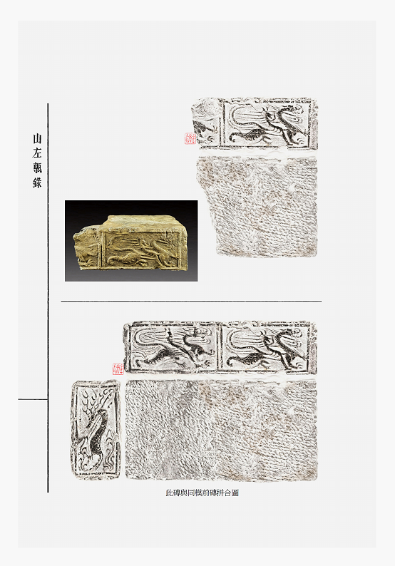 《山左磚錄》第二輯收錄山東膠東地區(qū)東漢至南北朝古磚50品,每品印有古磚彩色實(shí)物照片、反映古磚各面位置關(guān)系的拓片,對(duì)個(gè)別殘存同模古磚進(jìn)行了拼合。此外,對(duì)《山左磚錄》第一輯中存在的問(wèn)題作了勘誤。印本一函一冊(cè),開(kāi)本高43厘米,寬32厘米,宣紙彩印線裝。