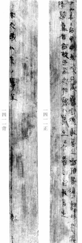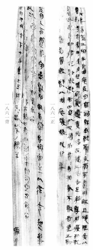 從對(duì)比中很明顯可以觀察出兩片木牘的正面筆跡各不同,並且如果我們?cè)賹?duì)比背面,一樣存在同樣的問(wèn)題,請(qǐng)見(jiàn)下揭: