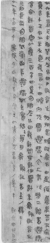 不過(guò)畢竟以“吏”字表示{事}於書同文字實(shí)施後不常見(jiàn)也是事實(shí),所以編號(hào)8-63的木讀,“吏”與“事”二字的使用分明,筆者為求慎重,也將其當(dāng)做是一個(gè)佐證之例。也就是說(shuō),考察了里耶秦簡(jiǎn)從“廿六年十一月”至“廿六年五月”木牘的用字,筆者判斷秦統(tǒng)一天下後,最早可能於“廿六年三月”就實(shí)施書同文字政策,而最晚應(yīng)不會(huì)超出“廿六年五月”之後。