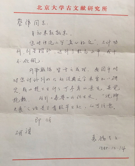 在我自學(xué)過程中,曾寫信給裘錫圭、李學(xué)勤先生請教問題,都得到了兩位先生的回信,他們的鼓勵和肯定讓我更加堅定了信心,我始終都非常感謝他們!二十多年來,兩位先生的書信我都很好地保存著。
