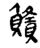 原考釋者的隷定並無誤,但在此隷定的字形基礎之上再來解釋字形,卻有很大的迷惑性,以致要在行文中加“疑”字。其實,此字毫無疑問就是“負”字。我們在不改變原有隷定字形的基礎上祇要把此字三個偏旁的位置調換一下,即把“人”形移到“貝”上,則此字就變成“
