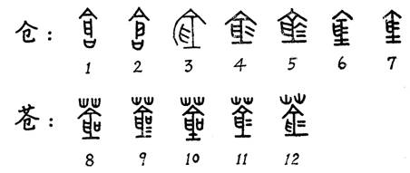 吳振武先生根據(jù)古文字中的“倉”及從“倉”之字將東下一字釋作“戶”,字形例證為5: