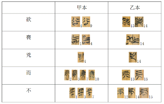 的寫法與甲本相同,我們認為可能是乙本抄手開始抄寫時受甲本的影響,後來就恢復到原有風格。