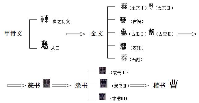 “曹”字的歷史發(fā)展演變過程大致如下: