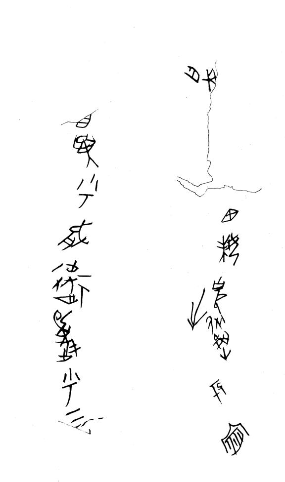 [38] 周原甲骨也有一些符號,《周原甲骨文》稱為“刻劃符號”,其中H11:24所見者與本片類似。