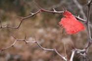 陳先生所言極是。其實網(wǎng)上照片有清楚的,選這個圖片只是為了突出顯示酸棗的棘刺,所以選了一個既沒葉,也沒果的(右邊的一幀好像有個干巴果),看去很有冬天的肅殺之氣??尚Φ氖亲筮叺囊粠诖躺线€殘留了一片紅色的絲織物。雖然是不應(yīng)該有的,卻反倒增加了一抹靚麗的色彩。
