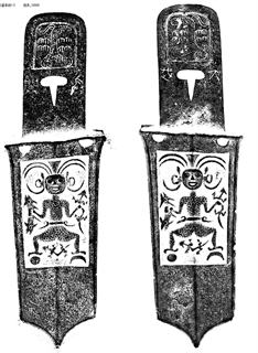 今按:戰(zhàn)國晚期的“兵辟太歲”戈中太歲神的形象也與日、月、蛇三種元素有關(見下圖)。其中人物雙腳分別踩踏日月,腰間顯然是以蛇爲帶的,也可以與胡家草場簡文中的“帶蛇”相印證。當然,這樣的神明形象在古代辟兵術中應很多見,神明與“日”、“月”、“蛇”的元素組合變化也可能有多種形象,隨著時間推移也會有很大變化,聯(lián)繫這些資料只是說明在古人的思想中這些元素與辟兵相關,並不是認爲它們在性質上完全相同。