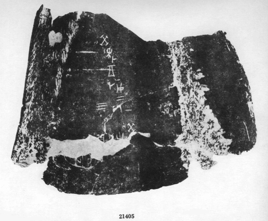 [12] 蔡哲茂:《甲骨新綴二十七則》,第十八組綴合,將此片綴以五片無(wú)號(hào)碎甲a、b、c、d、e。並將此條卜辭隸釋為“貞:王亡