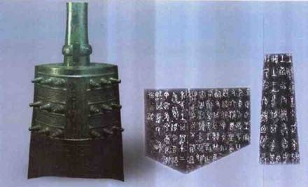 第三,而這種用韻文表達(dá)的形式的出現(xiàn),是與音樂的使用和發(fā)展有莫大的關(guān)係。特別是西周禮樂中最重要的樂器編甬鐘,在西周穆王(976-922 B.C.)時(shí)期以後才出現(xiàn)了《周禮》中所描述八件一組、與編磬和鎛共同使用的範(fàn)式。從考古資料來看,西周典章文物的成形,如《周禮》所描述的鼎簋制度、樂懸制度等殆經(jīng)數(shù)世到穆王(976-922 B.C.)、恭王(922-900 B.C.)時(shí)期,始具雛型。就樂器而論,西周晚期以前,禮樂中最重要的樂鐘─甬鐘,還是延襲商代的三件一組的規(guī)制。[48]穆王(976-922 B.C.)以後禮器樂器的組合特別是鼎簋鍾等開始定型並呈等級(jí)序列,差近三禮所述。如我們?cè)诖宋拈_篇所說,樂鐘雖然有雙音的效果,但是真正用正側(cè)鼓雙音構(gòu)成四聲音階的旋律效果,也是在西周中晚期的中義鐘時(shí)期和