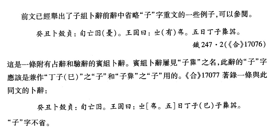 裘先生《文集·甲骨文卷》第191-192頁在討論卜辭前辭中的“子”字省略例時(shí)說: